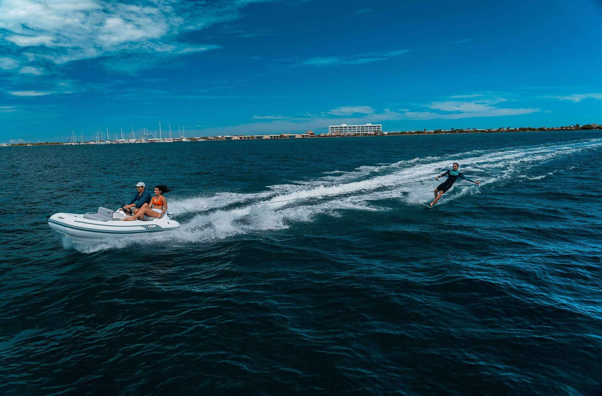 With a flat floor deck free of obstructions, an ergonomically positioned throttle, a sport console with cupholders, a convenient platform with a stainless-steel sliding ladder, stainless steel handles and rails and, among many other features, the ABJET guarantees a seamless experience on the water.