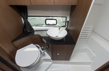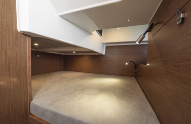 The Gran Turismo 32 has two double berths and a real shower space with an independent head compartment, making nights on board a pleasure. Bathed in soft light from the long hull windows, the main central cabin and the mid cabin can use the spacious storage column at the bottom of the companionway. The space is enhanced by elegant walnut coloured materials.