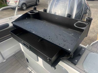 - Heavy-duty allow bait station with 4 rod holders and drawer