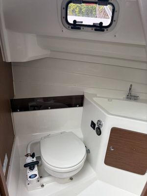 - Separate compartment with marine toilet and holding tank