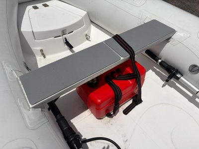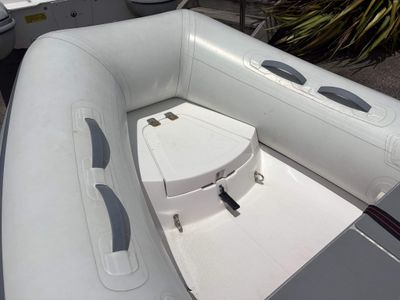 When space is needed, full-featured 10VS is the boat to look to. With its unique forward-hull design, our premier open tender is the roomiest fibreglass RIB on the market. Perfect as a little runabout or tender! This package has been stored indoors for majority of it's life.
