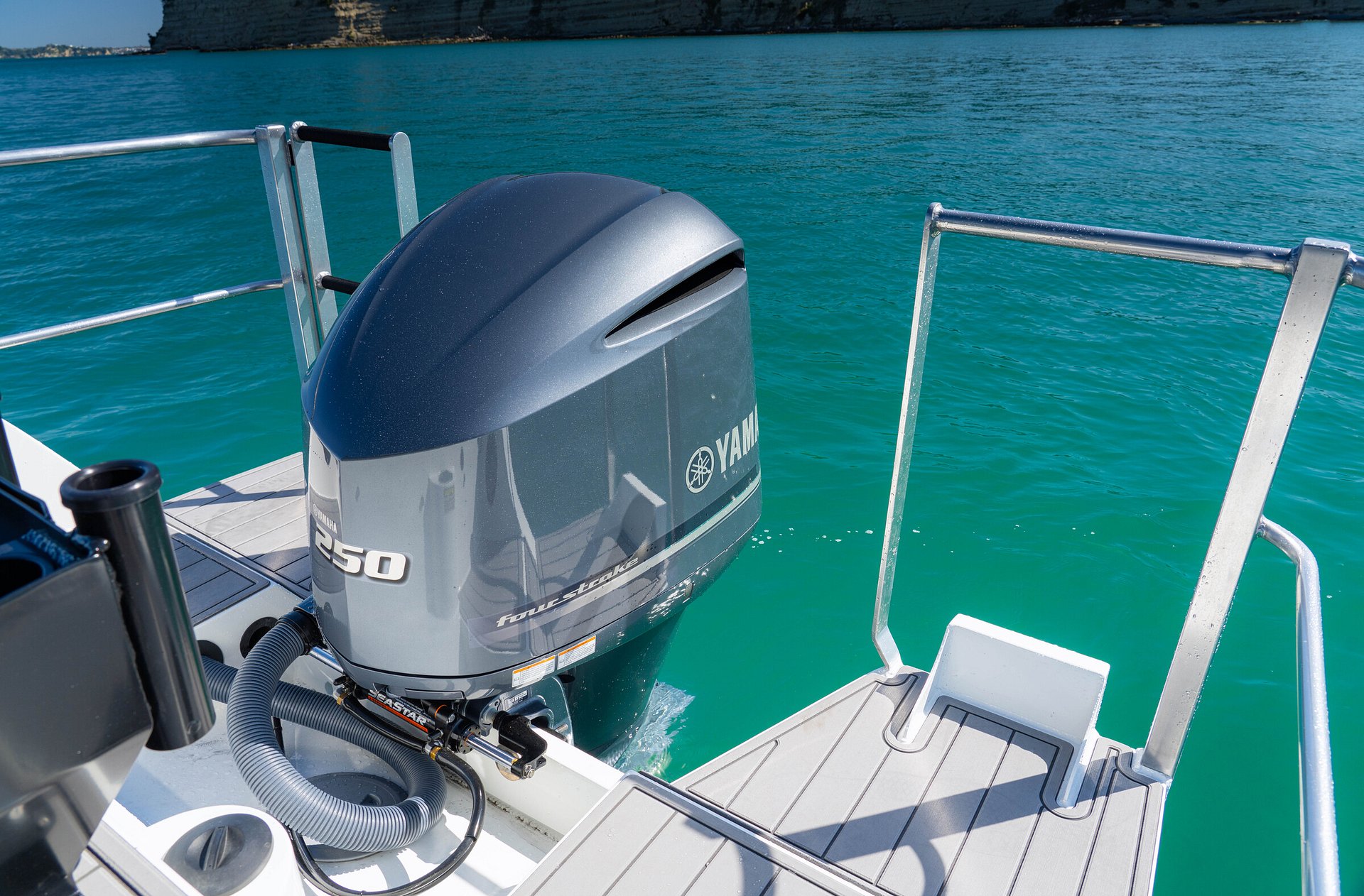 The new F250 not only looks good with it's more aggressive styling, but comes with Yamaha's Thrust Enhancing Reverse Exhaust system, which delivers increased prop grip and thrust for improved maneuvering in docking situations and reversing up to your next big catch.